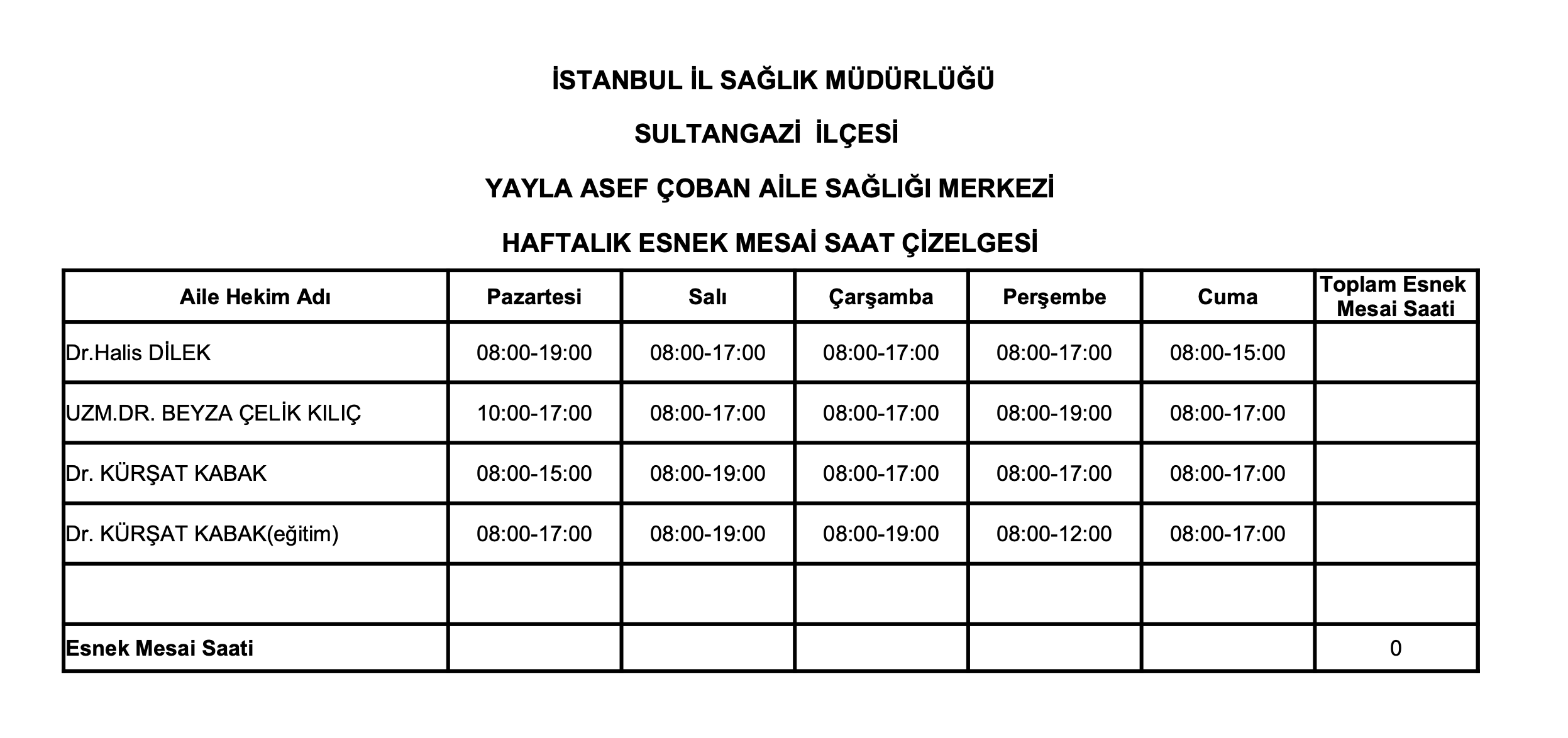 Tüm Hekimlerimizin Mesai Saatleri